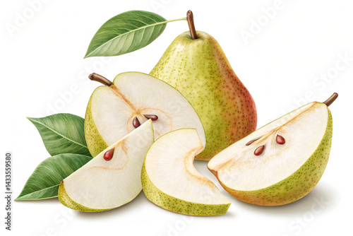 Pear with slices isolated on transparent background