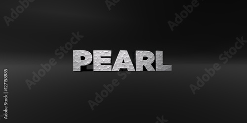 PEARL - hammered metal finish text on black studio - 3D rendered royalty free stock photo. This image can be used for an online website banner ad or a print postcard.