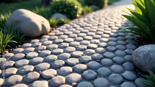 Pebble Art Mosaic: Intricate Geometric Stone Pattern