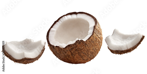 pedaços de coco cru isolado em fundo transparente