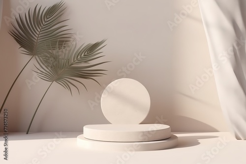 Pedestal podium display. Minimal scene with podium and abstract background. 3d shape for products display presentation. Pastel minimal wall scene, Studio room.