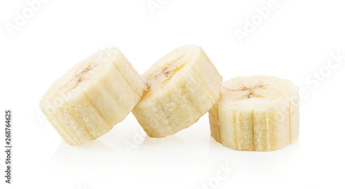 Peeled banana slices isolated on white background. full depth of field