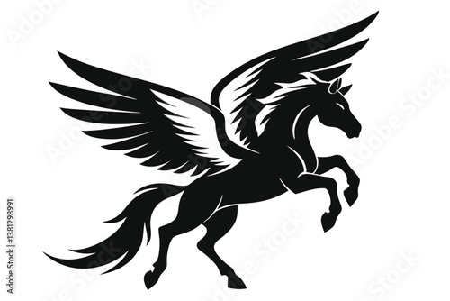 Pegasus Silhouette, Winged Horse in Flight, Mythical Creature, Leaping,
