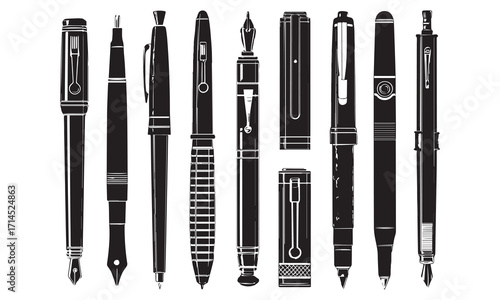 Pen Clipart And Vector Pens, Fountain Pens, Ballpoint, Office and School Stationery Illustrations