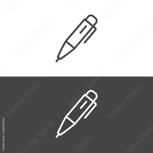 Pen icon on white and gray background, a simple line drawing of a writing tool.