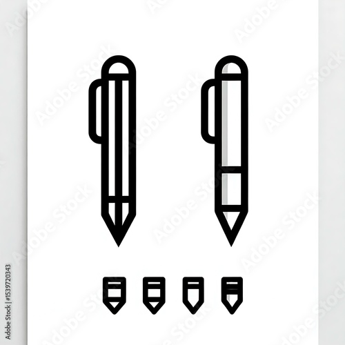 Pen Icon Pair – Solid and Outline Vector Style on White Background