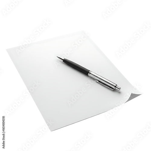 Pen lying on a blank sheet of paper, Isolated on transparent background