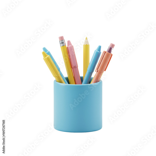 Pencil and Pen Holder with Pastel Colors on Transparent Background Desk Organizer