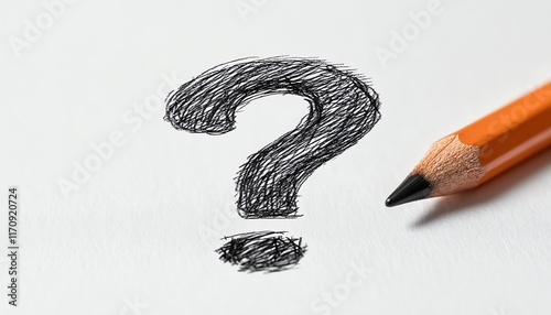 Pencil drawing of a question mark, clean and simple lines, soft shading, white background, modern minimalist artwork, highresolution, artistic design