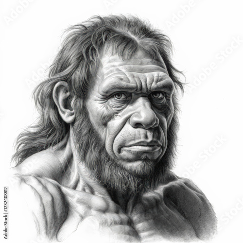 Pencil drawing portrait of Neanderthal man.
