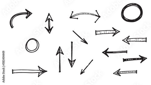 Pencil scribbles. Arrows, circles and mixed shapes Illustration