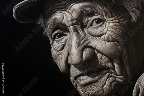 pencil sketch of an elderly man, deep-set eyes, detailed wrinkles, expressive gaze