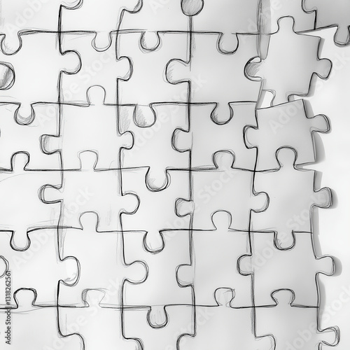 pencil sketch of simple jigsaw puzzle pattern, showcasing interlocking pieces and creative design