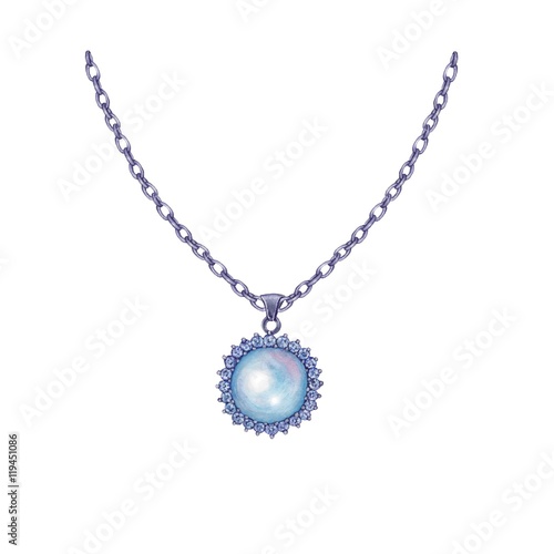 Pendant with pearls. Watercolor illustration. Handmade drawing. Jewelry