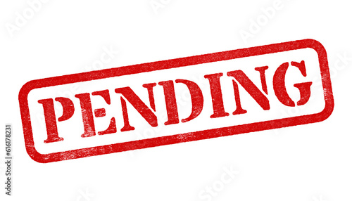 Pending red rubber stamp isolated on transparent background with distressed texture effect