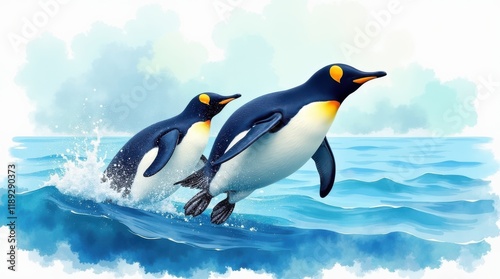 Penguin day celebration ocean waves illustration marine environment playful perspective joyful concept
