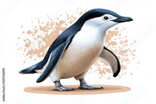Penguin is standing on a sandy beach