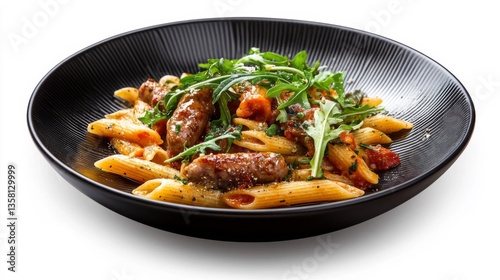 Penne Pasta with Sausages and Arugula in Tomato Sauce
