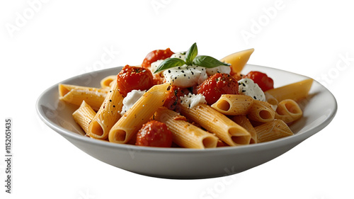 Penne Pasta with Tomato Sauce and Mozzarella Cheese, Isolated