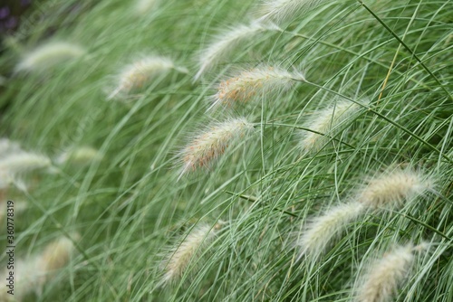 Pennisetum villosum is a Poaceae perennial plant that produces beautiful scenery with cool white ears from summer to autumn.
