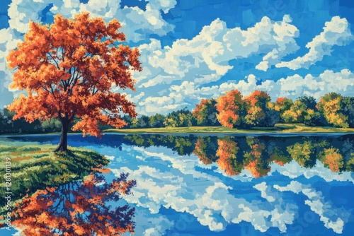 Pennsylvania Lake Reflection with Tree Silhouette on Scenic Blue Landscape