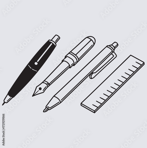 pens, pencil scale silhouette vector art illustration, vector set of pens