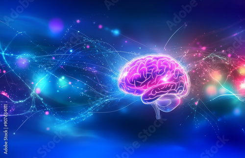 Pensée Concentrée : Cerveau Violet avec Lumières Abstraites