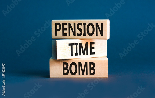 Pension time bomb symbol. Concept words Pension time bomb on wooden blocks on a beautiful grey table grey background. Business pension time bomb concept. Copy space.
