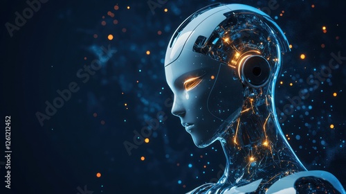 Pensive AI: A futuristic humanoid robot contemplating its existence in the digital age