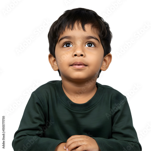 Pensive young boy looking up thoughtfully displaying a contemplative mood