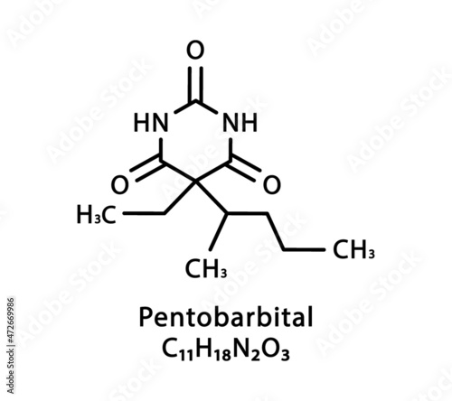 Pentobarbital molecular structure. Pentobarbital skeletal chemical formula. Chemical molecular formula vector illustration