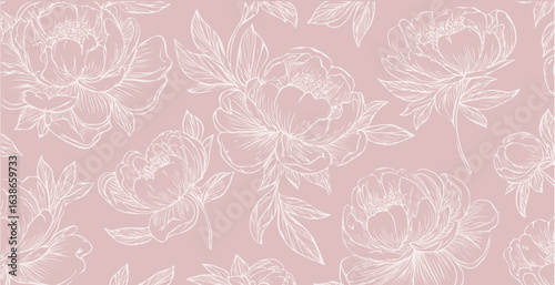 Peony print pattern background in provance style, floral background. Pastel tones floral vintage style wallpaper in vector.