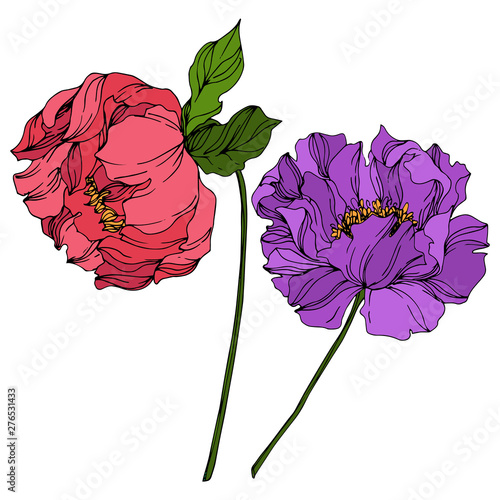 Peony floral botanical flowers. Wild spring leaf wildflower. Engraved ink art. Isolated peonies illustration element.