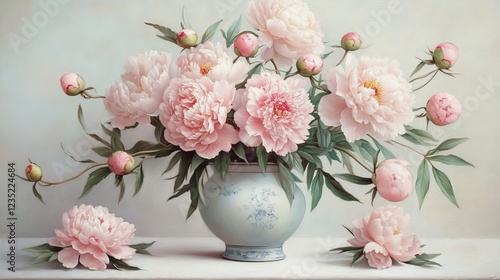 Peony flowers in vase on white background