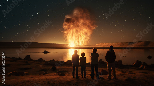 People / guy Witnessing a Meteorite Impact explosion on Earth, generative AI
