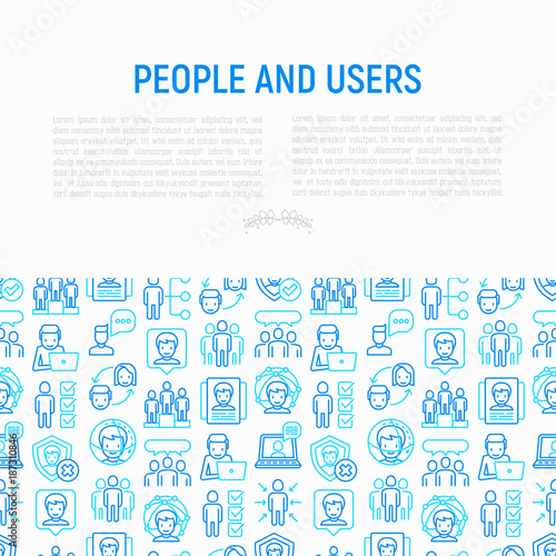 People and users concept with thin line icons: management, communication, human resouses, teamwork, candidate. Modern vector illustration, web page template.