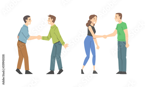 People Character Shaking Hand as Brief Greeting or Parting Tradition Vector Set