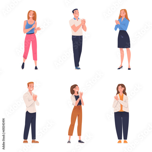 People Character Standing and Clapping Their Hands as Applause and Ovation Gesture Vector Illustration Set
