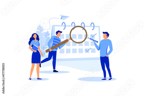 people characters make an online schedule in the tablet. design business graphics tasks scheduling on a week flat design illustration