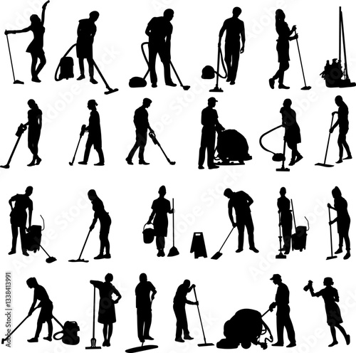 people cleaning set, silhouette collection vector on white background