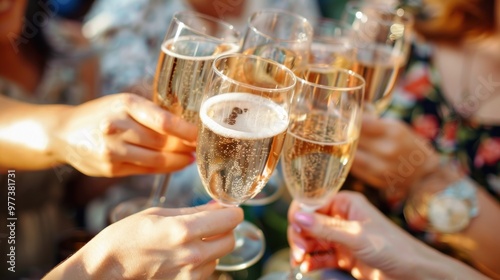 People clinking champagne glasses at a celebration. Party and toast concept.