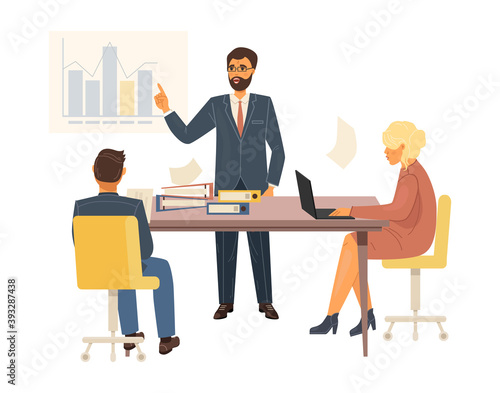 People communicate on planning, hold meetings with growth charts.