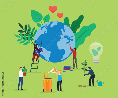 people cooperating for environmental protection 2d vector illustration concept for banner, website, illustration, landing page, flyer, etc.