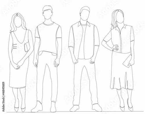 people drawing by one continuous line, vector, isolated