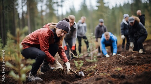 People engaged on making the world better. Planting trees, working together to rebuild and preserve natural forests. Sustainable practices. Sense of community. Generative AI.