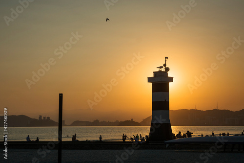 People enjoying the sunset at Santos beach in the Ponta da Praia lighthouse region.