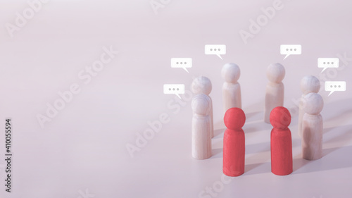 People figures and comment clouds above their heads. Concept of leadership,influence,crisis management. the search for fresh ideas and optimal solutions. Best thought, good idea, positive feedback.