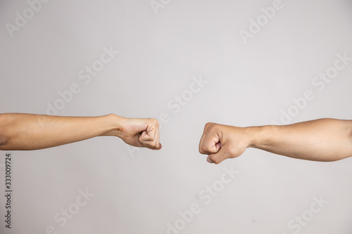 People greeting together by new style for prevent coronavirus. social distancing