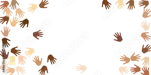 People hands of various skin tone silhouettes. Crowd concept. Multinational