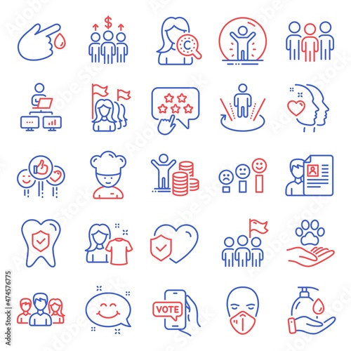 People icons set. Included icon as Pets care, Like, Ranking star signs. Life insurance, Feminism, Meeting symbols. Customer satisfaction, Blood donation, Group. Dental insurance, Work home. Vector